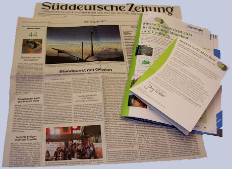 Bei der Finanzmesse „Grünes Geld München“ 2011 unterstützte KommunikationsManagement den Veranstalter EcoEffekt GmbH bei der Presse- und Medienarbeit.